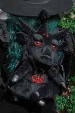 Soft faux (fake) fur material, zip closure with a goat-head statement to the front, 3D ears + horns, embroidered pentagram, fur detailing and adjustable straps. Backpack has adjustable straps.