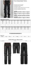 Black shiny twill denim jeans with segmentation details. Pants have detachable legs that are connected by snap buttons, and when removed, pants turn into shorts. Pants have below the knee patch pockets and eyelet webbing.