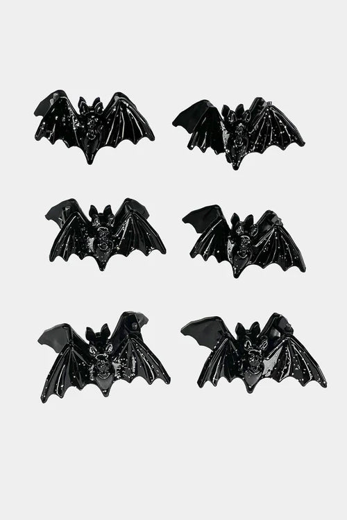 Pack of 6 glittery black bat design hair claw clips. Reinforced design with exceptional quality.