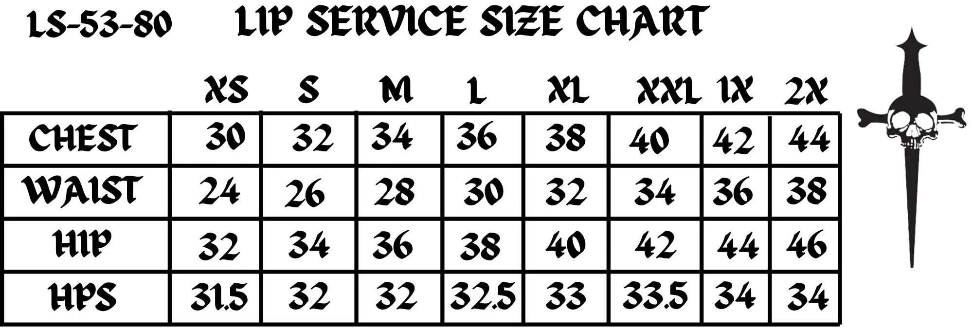 Black and white pinstripe dress with bondage hook and strap details at the waist, zippers and adjustable straps.