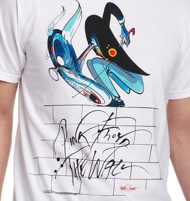 White t-shirt with Pink Floyd Teacher full colored design printed on the front.