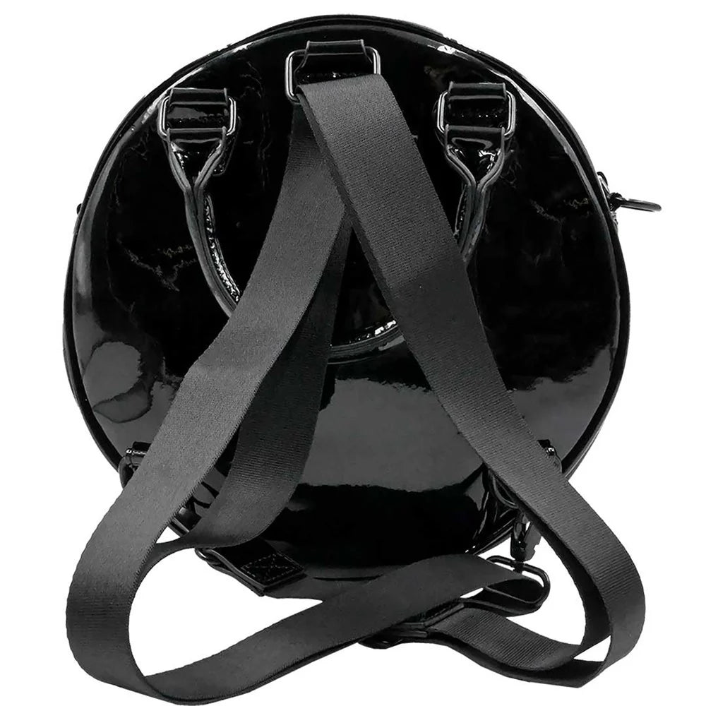 Black cat eyeball purse featuring a plush velvety feel on the front and PU vinyl backing. Bag can be turned into a backpack, shoulder purse or handheld. Eyeball is an outer zip pocket. Bag features main pocket with coffin zip pull.